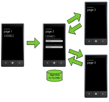 - When the user presses the Back Button from Page 2, the value of textbox 1 is put into the Application State Dictionary during the OnNavigatedFrom method